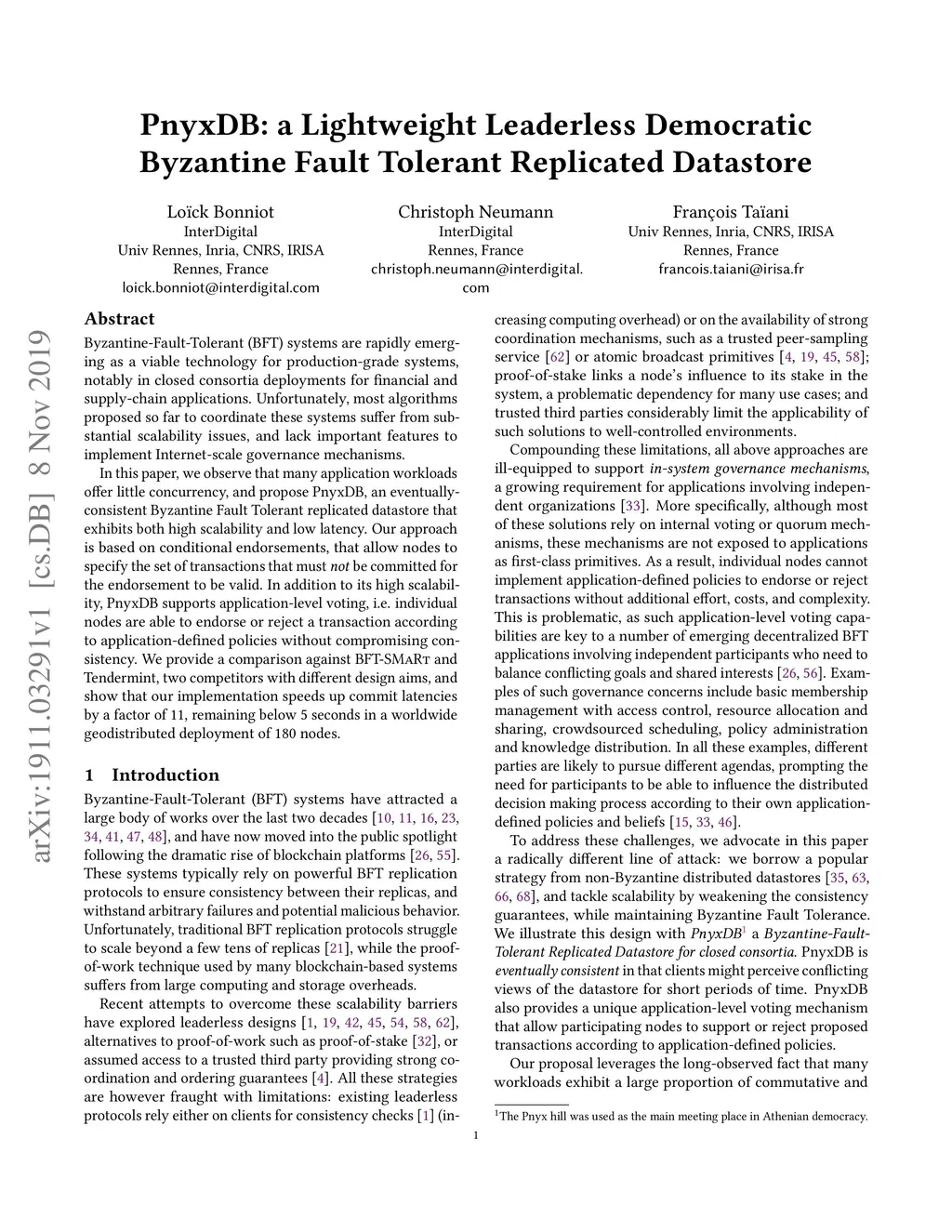 PnyxDB: a Lightweight Leaderless Democratic Byzantine Fault Tolerant