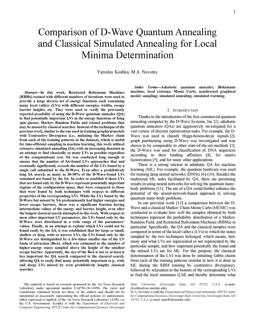 Restricted Boltzmann Machines trained with different numbers of iterations were used to provide a diverse set of energy functions each containing many local valleys (LVs) with different energies, widths, escape barrier heights, etc. They were used to verify the previously reported possibility of using the D-Wave quantum annealer (QA) to find potentially important LVs in the energy functions of Ising spin glasses that may be missed by classical searches. For classical search, extensive simulated annealing (SA) was conducted to find as many LVs as possible regardless of the computational cost. SA was conducted long enough to ensure that the number of SA-found LVs approaches that and eventually significantly exceeds the number of the LVs found by a single call submitted to the D-Wave. Even after a prohibitively long SA search, as many as 30-50% of the D-Wave-found LVs remained not found by the SA. In order to establish if LVs found only by the D-Wave represent potentially important regions of the configuration space, they were compared to those that were found by both techniques. While the LVs found by the D-Wave but missed by SA predominantly had higher energies and lower escape barriers, there was a significant fraction having intermediate values of the energy and barrier height. With respect to most other important LV parameters, the LVs found only by the D-Wave were distributed in a wide range of the parameters' values. It was established that for large or small, shallow or deep, wide or narrow LVs, the LVs found only by the D-Wave are distinguished by a few-times smaller size of the LV basin of attraction (BoA). Apparently, the size of the BoA is not or at least is less important for QA search compared to the classical search, allowing QA to easily find many potentially important (e.g., wide and deep) LVs missed by even prohibitively lengthy classical searches.