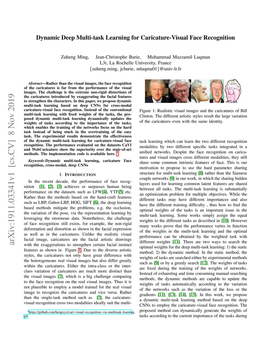 Dynamic Deep Multi-task Learning for Caricature-Visual Face Recognition
