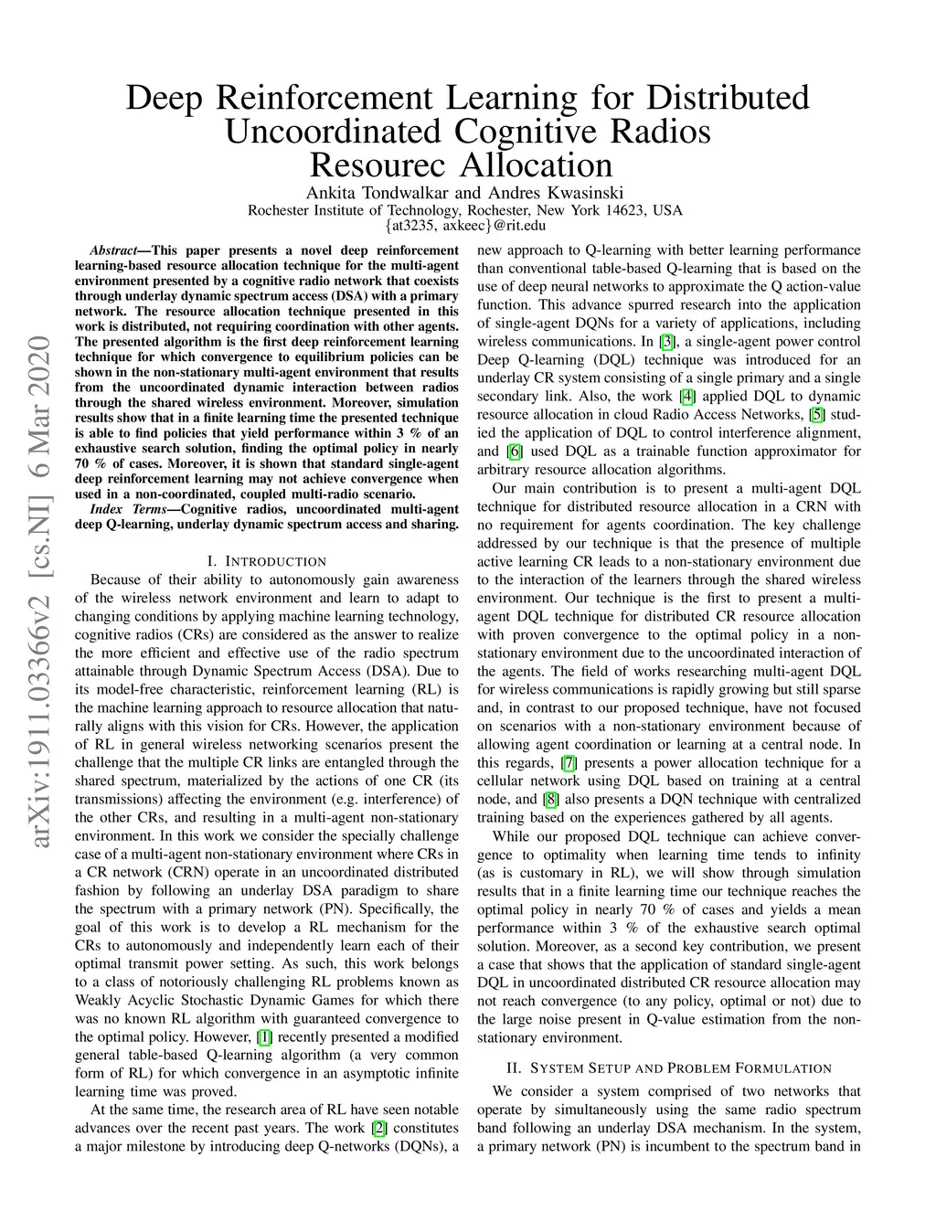 Deep Reinforcement Learning for Distributed Uncoordinated Cognitive