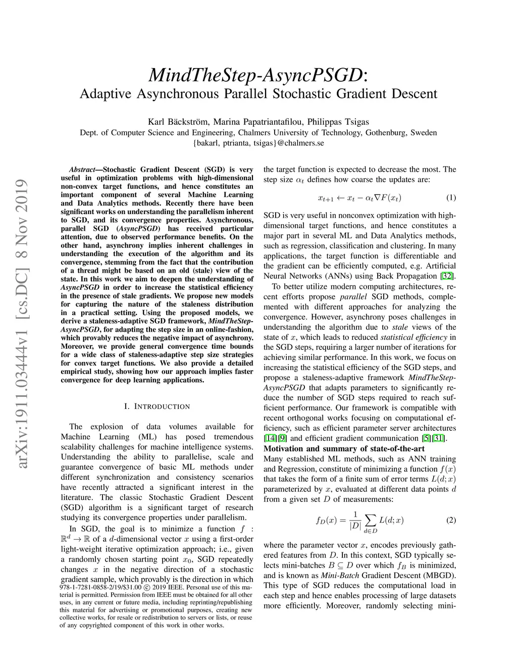 Stochastic Gradient Descent (SGD) is very useful in optimization problems with high-dimensional non-convex target functions, and hence constitutes an important component of several Machine Learning and Data Analytics methods. Recently there have been significant works on understanding the parallelism inherent to SGD, and its convergence properties. Asynchronous, parallel SGD (AsyncPSGD) has received particular attention, due to observed performance benefits. On the other hand, asynchrony implies inherent challenges in understanding the execution of the algorithm and its convergence, stemming from the fact that the contribution of a thread might be based on an old (stale) view of the state. In this work we aim to deepen the understanding of AsyncPSGD in order to increase the statistical efficiency in the presence of stale gradients. We propose new models for capturing the nature of the staleness distribution in a practical setting. Using the proposed models, we derive a staleness-adaptive SGD framework, MindTheStep-AsyncPSGD, for adapting the step size in an online-fashion, which provably reduces the negative impact of asynchrony. Moreover, we provide general convergence time bounds for a wide class of staleness-adaptive step size strategies for convex target functions. We also provide a detailed empirical study, showing how our approach implies faster convergence for deep learning applications.