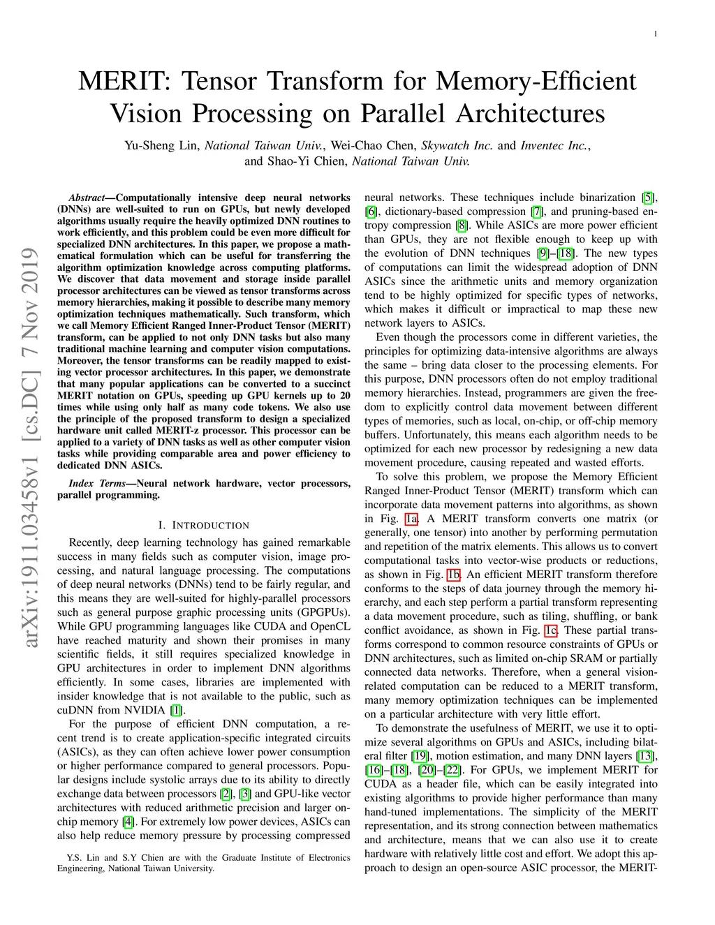 MERIT: Tensor Transform for Memory-Efficient Vision Processing on