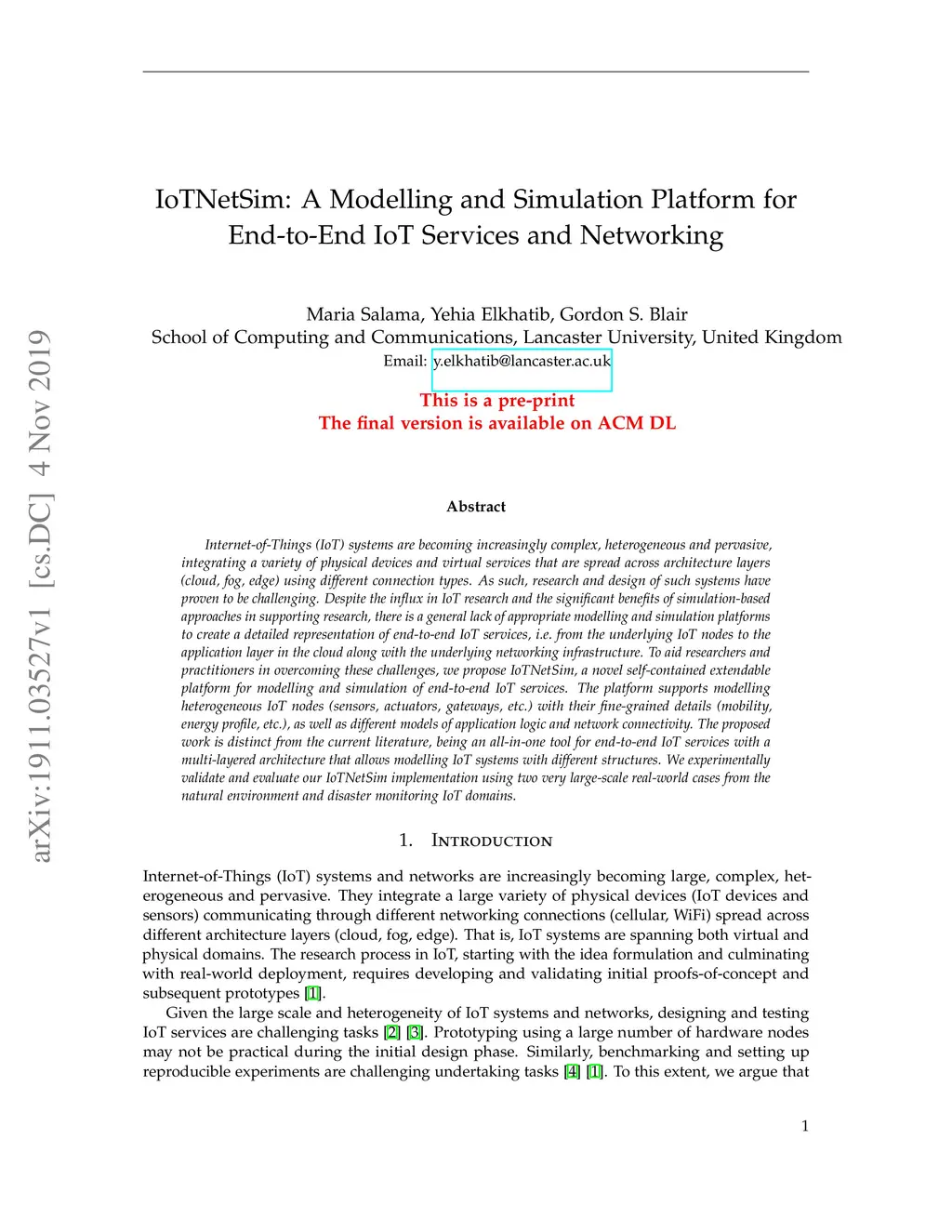 IoTNetSim: A Modelling and Simulation Platform for End-to-End IoT