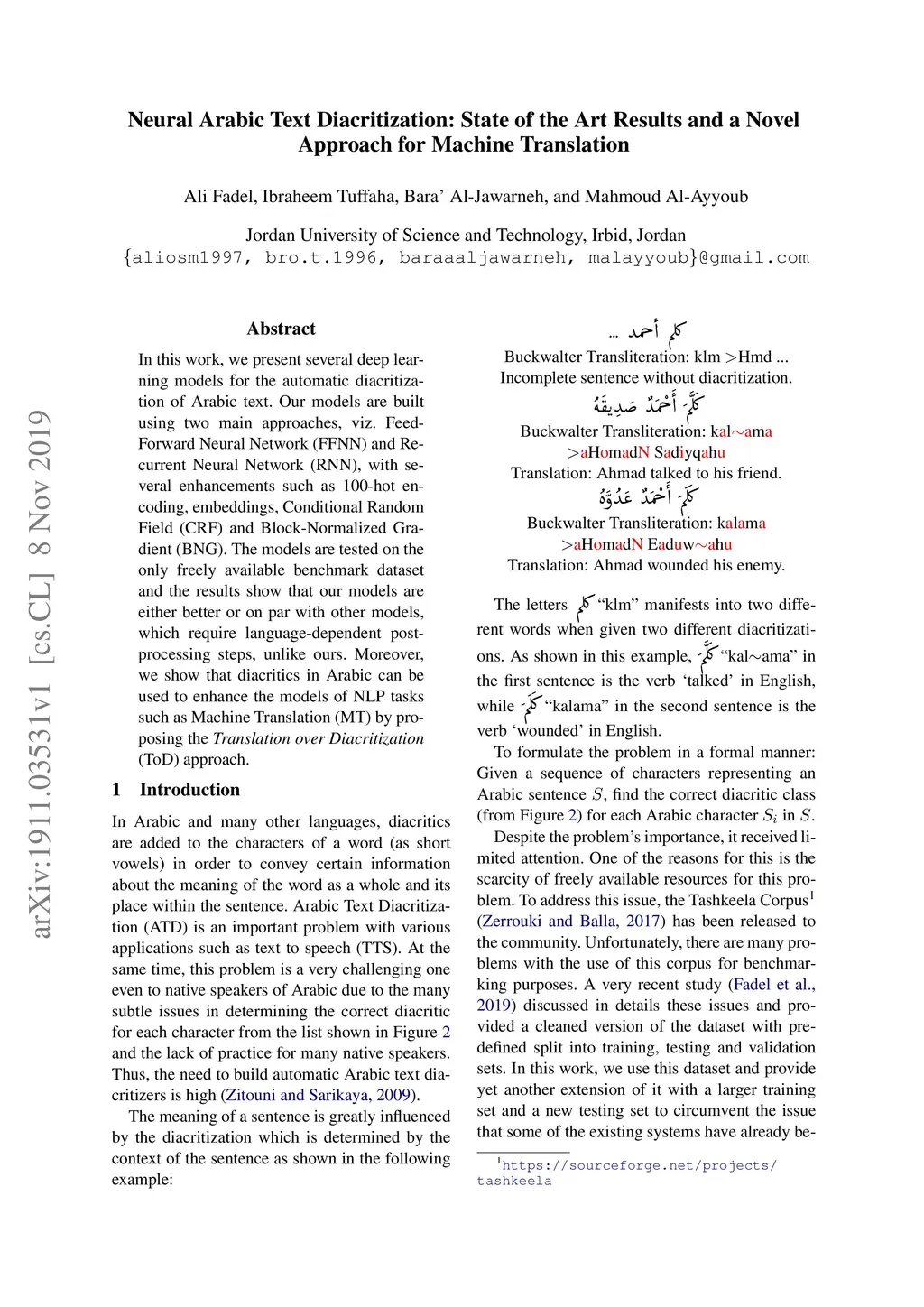 Neural Arabic Text Diacritization: State of the Art Results and a Novel