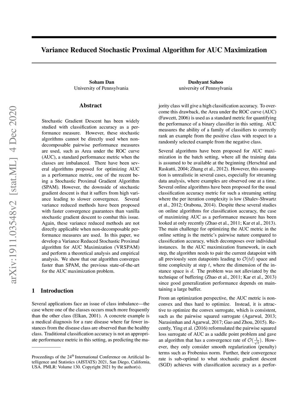 Variance Reduced Stochastic Proximal Algorithm for AUC Maximization