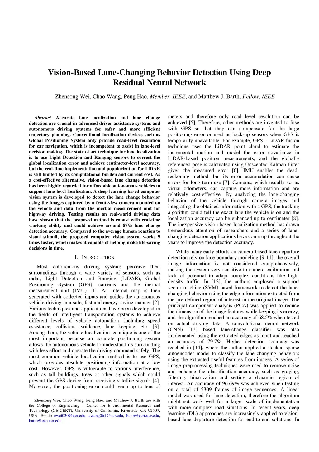 Vision-Based Lane-Changing Behavior Detection Using Deep Residual Neural