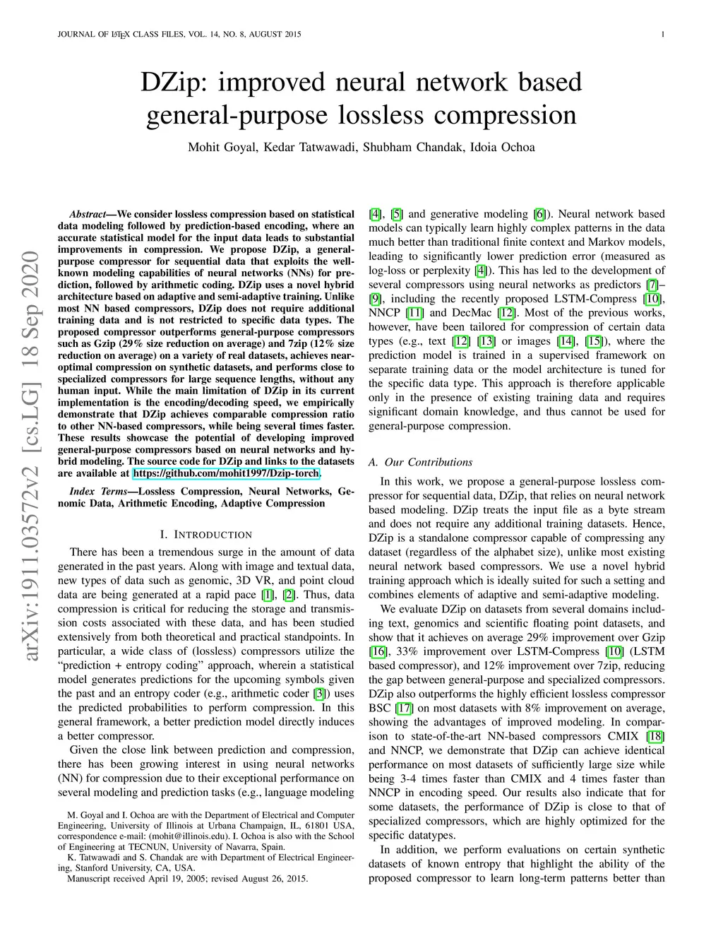 DZip: improved general-purpose lossless compression based on novel