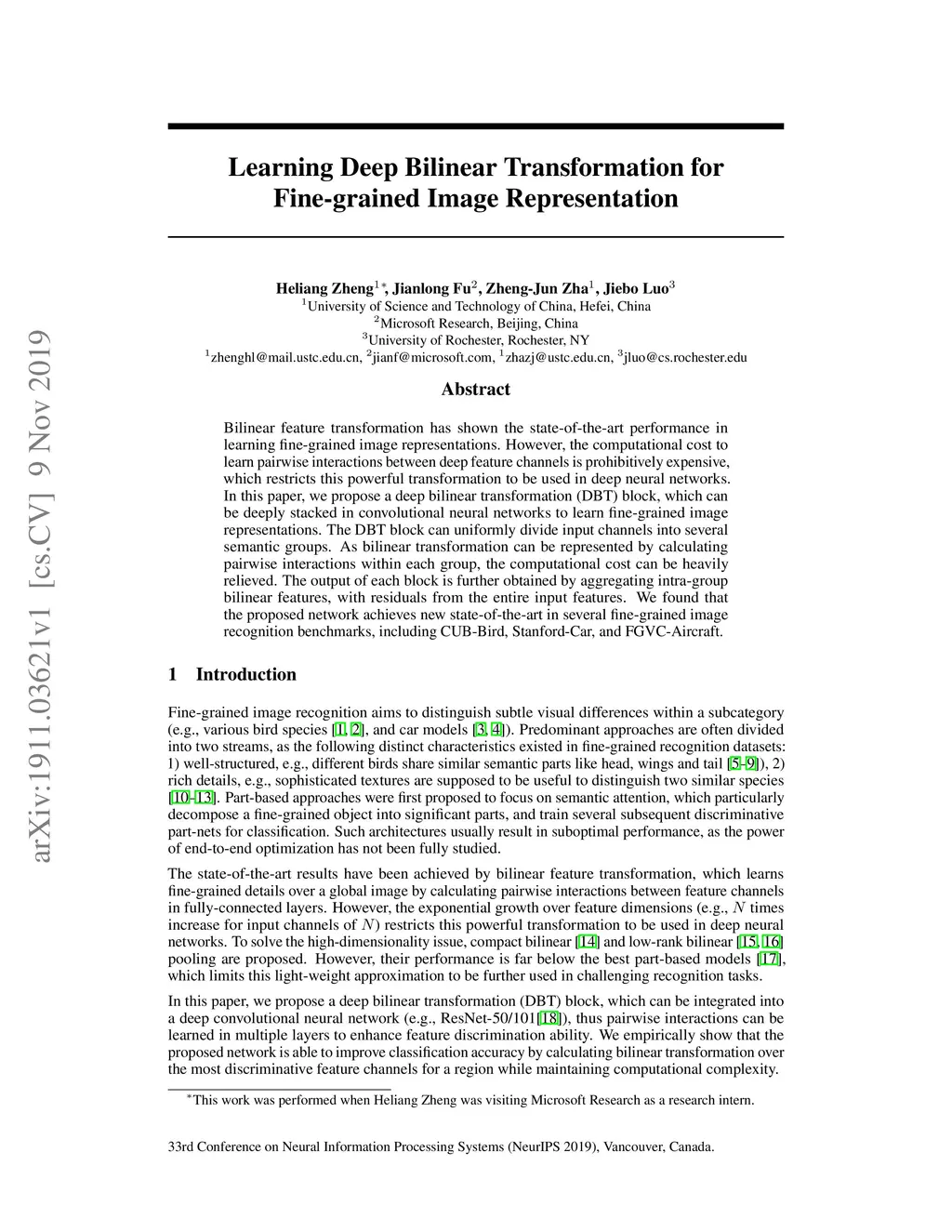 Learning Deep Bilinear Transformation for Fine-grained Image