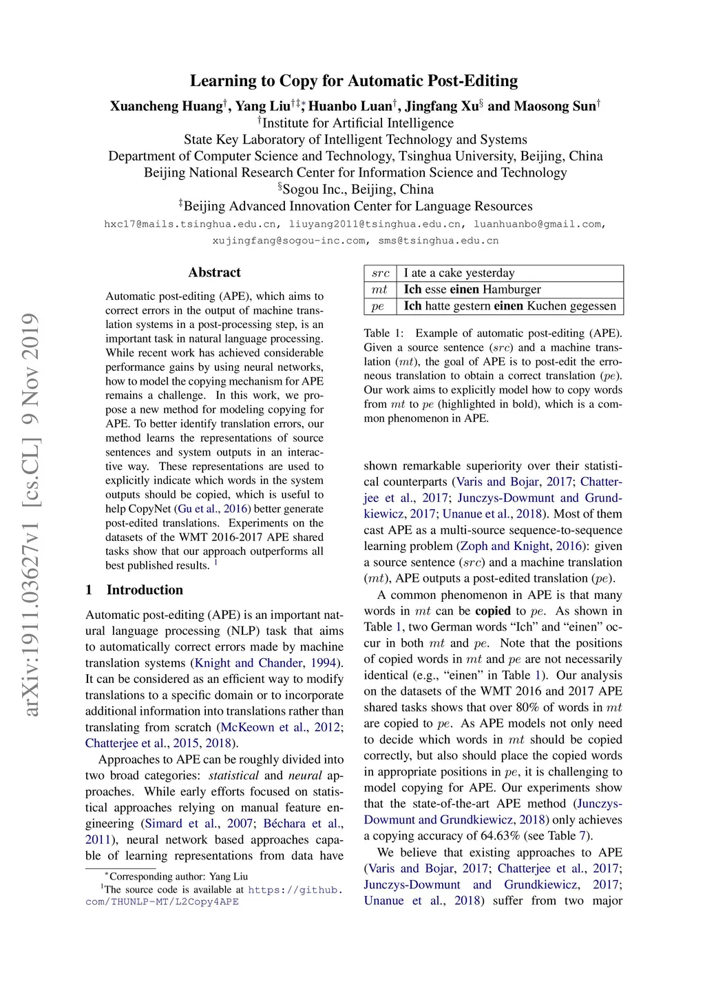 Learning to Copy for Automatic Post-Editing