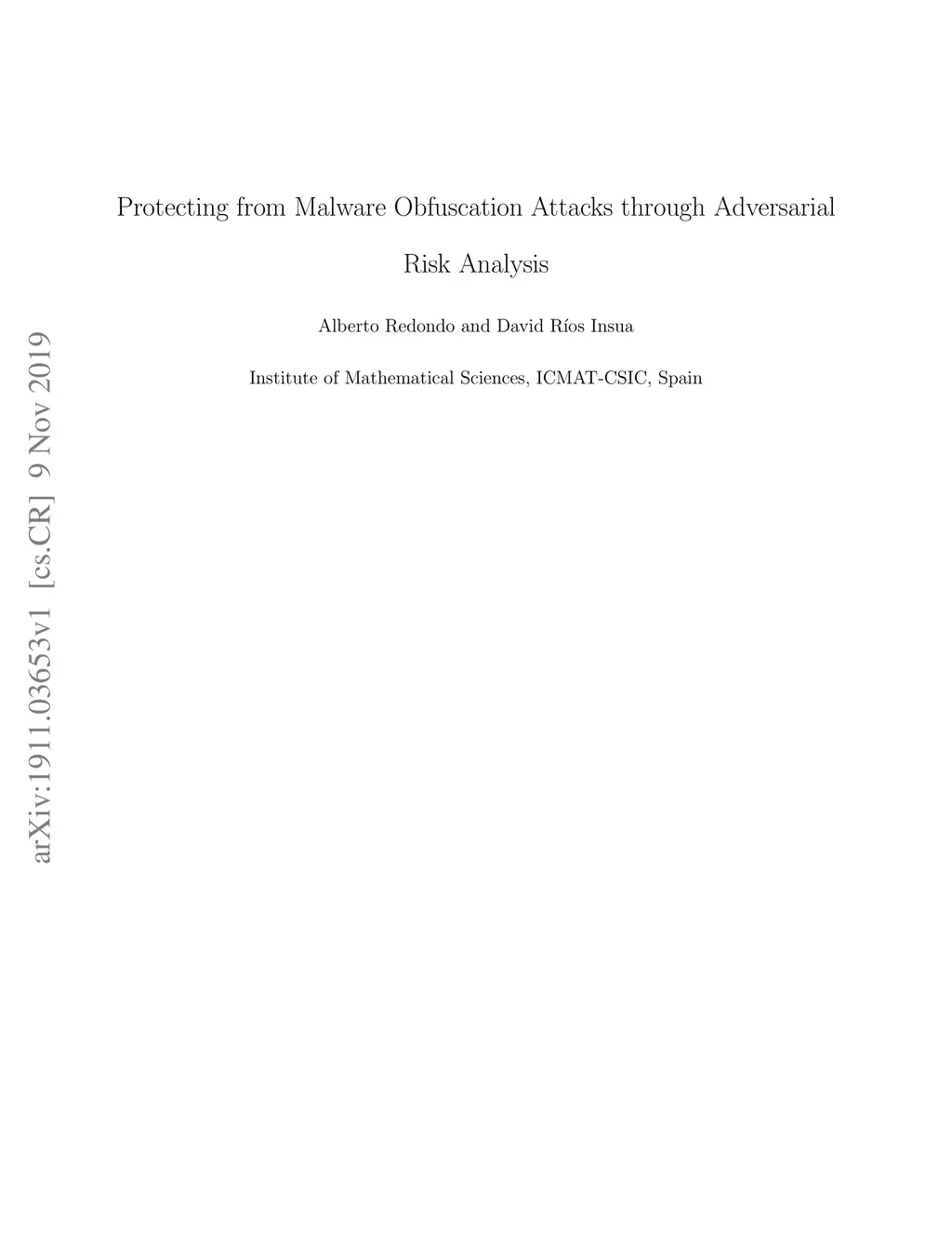 Malware constitutes a major global risk affecting millions of users each year. Standard algorithms in detection systems perform insufficiently when dealing with malware passed through obfuscation tools. We illustrate this studying in detail an open source metamorphic software, making use of a hybrid framework to obtain the relevant features from binaries. We then provide an improved alternative solution based on adversarial risk analysis which we illustrate describe with an example.