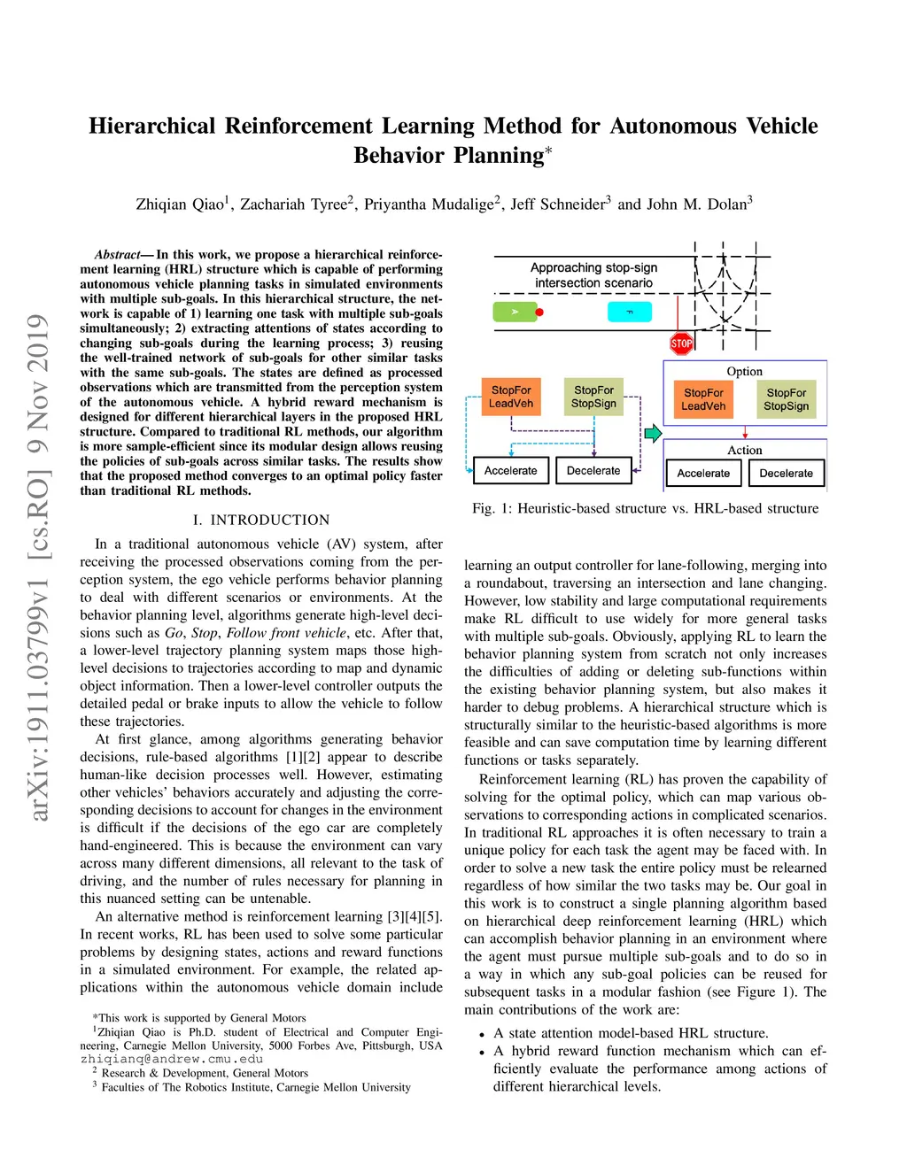 Hierarchical Reinforcement Learning Method for Autonomous Vehicle