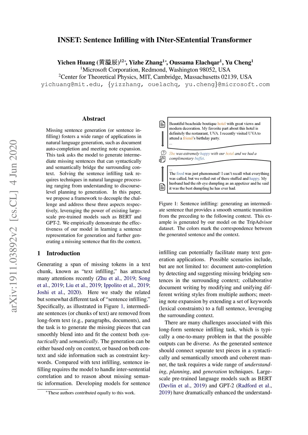 INSET: Sentence Infilling with INter-SEntential Transformer