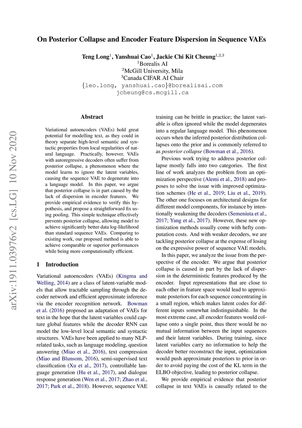 On Posterior Collapse and Encoder Feature Dispersion in Sequence VAEs