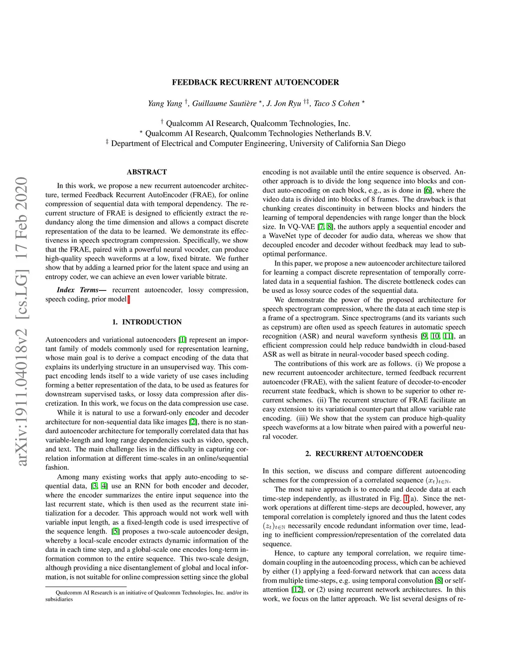 Feedback Recurrent AutoEncoder