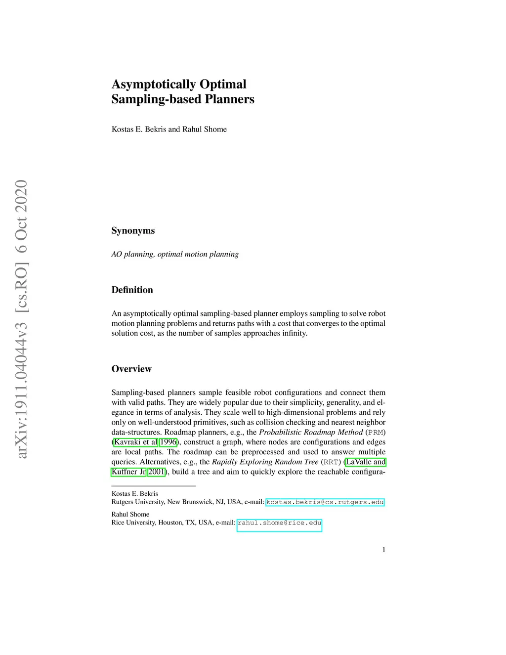 Asymptotically Optimal Sampling-based Planners