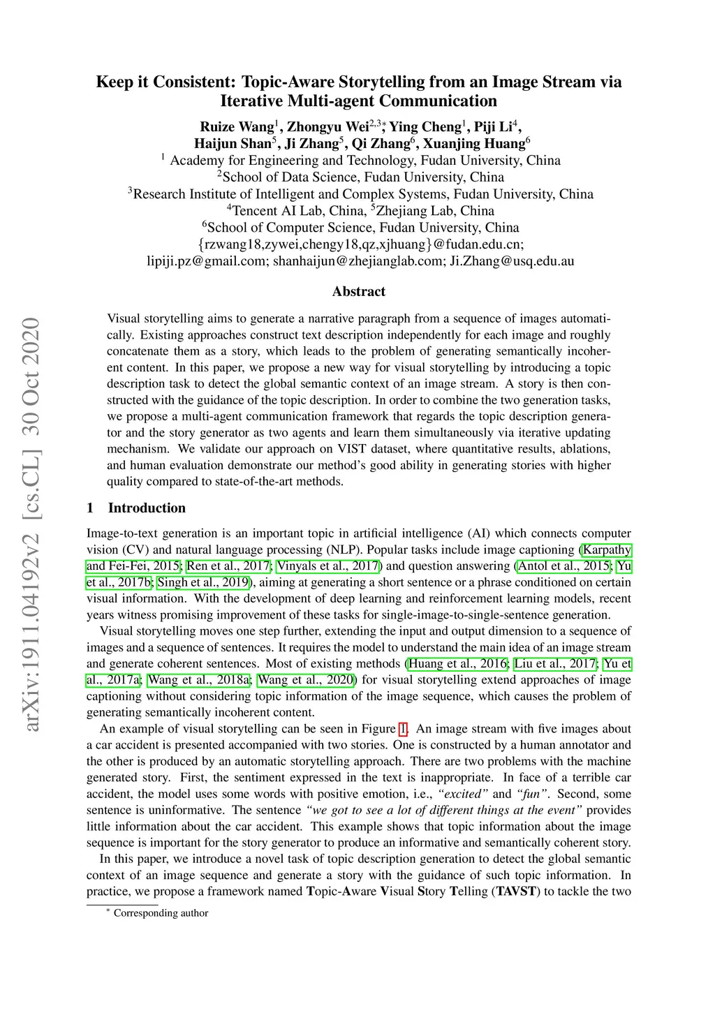 Keep it Consistent: Topic-Aware Storytelling from an Image Stream via