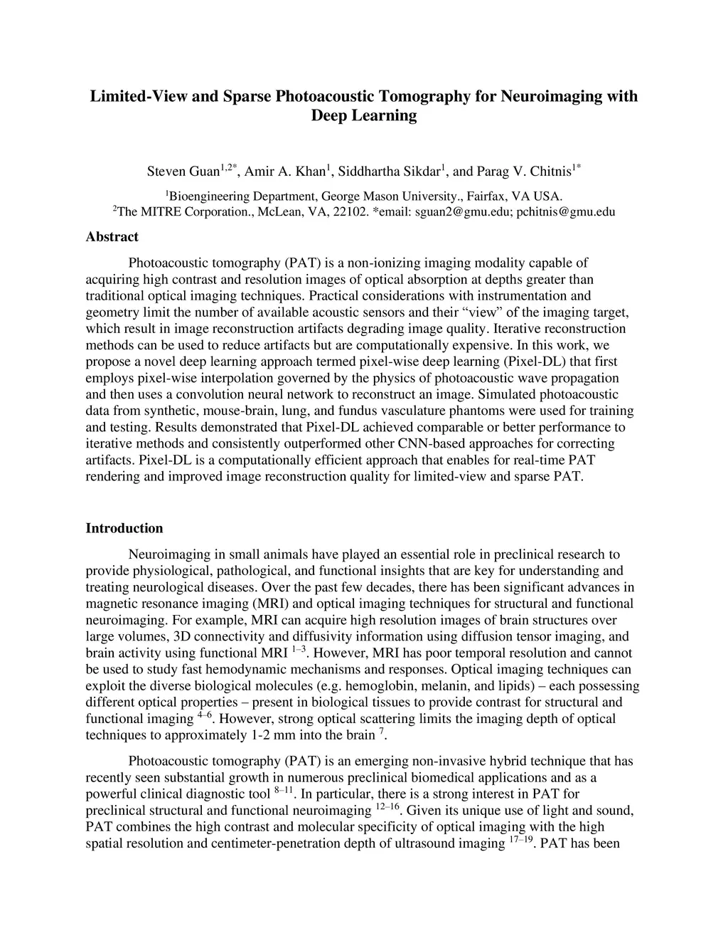Photoacoustic tomography (PAT) is a nonionizing imaging modality capable of acquiring high contrast and resolution images of optical absorption at depths greater than traditional optical imaging techniques. Practical considerations with instrumentation and geometry limit the number of available acoustic sensors and their view of the imaging target, which result in significant image reconstruction artifacts degrading image quality. Iterative reconstruction methods can be used to reduce artifacts but are computationally expensive. In this work, we propose a novel deep learning approach termed pixelwise deep learning (PixelDL) that first employs pixelwise interpolation governed by the physics of photoacoustic wave propagation and then uses a convolution neural network to directly reconstruct an image. Simulated photoacoustic data from synthetic vasculature phantom and mouse-brain vasculature were used for training and testing, respectively. Results demonstrated that PixelDL achieved comparable performance to iterative methods and outperformed other CNN-based approaches for correcting artifacts. PixelDL is a computationally efficient approach that enables for realtime PAT rendering and for improved image quality, quantification, and interpretation.