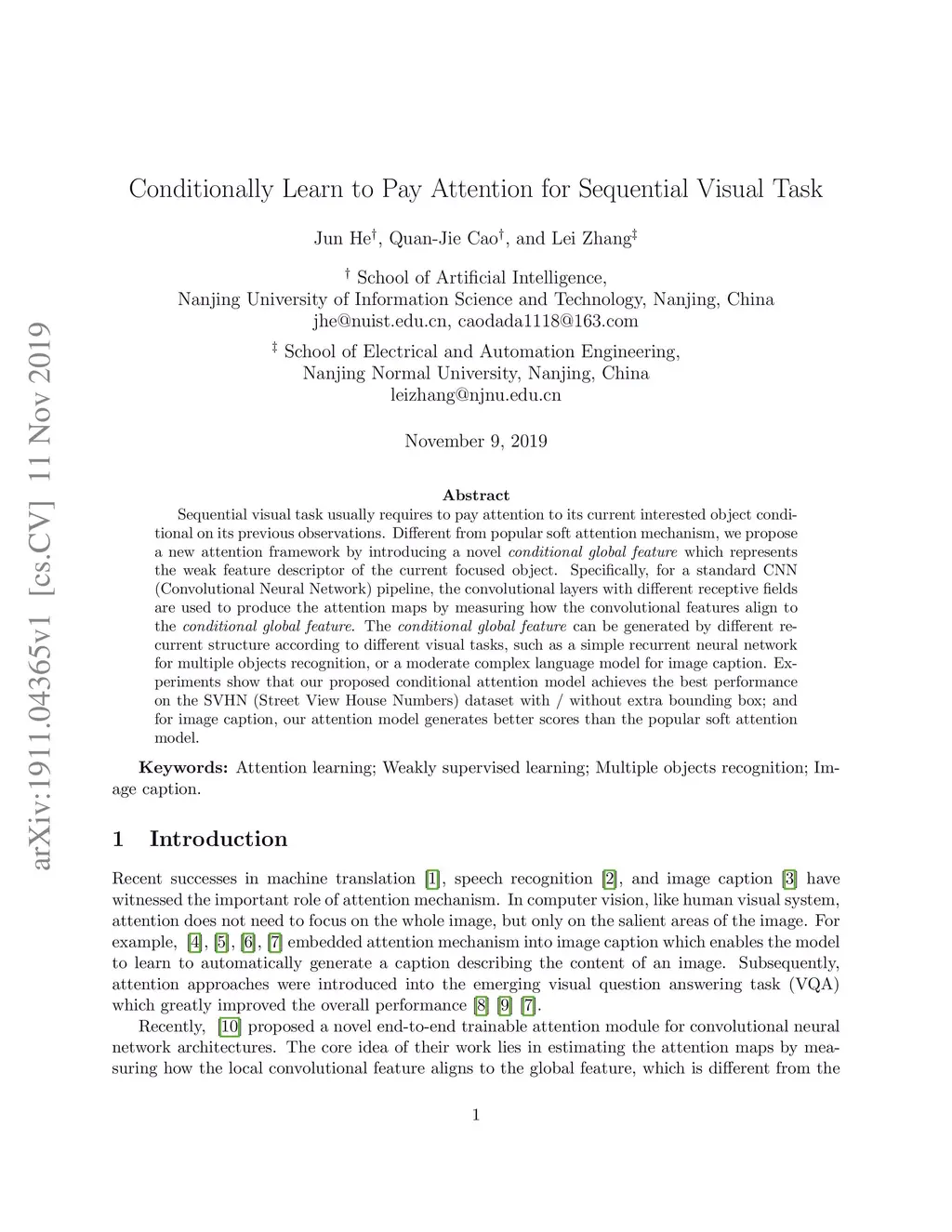 Conditionally Learn to Pay Attention for Sequential Visual Task