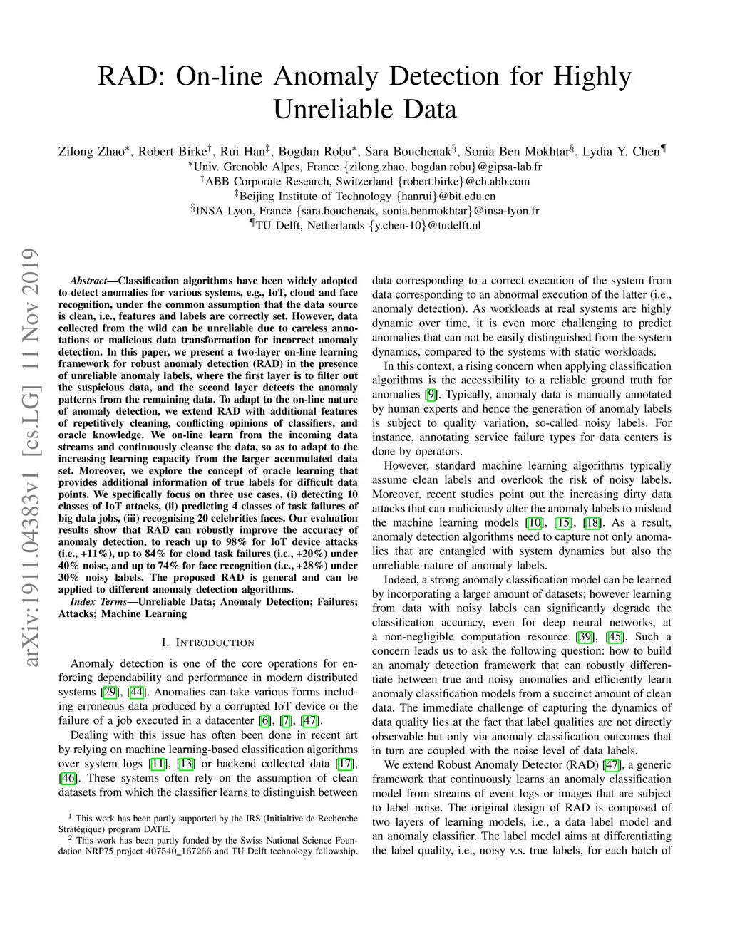 RAD: On-line Anomaly Detection for Highly Unreliable Data