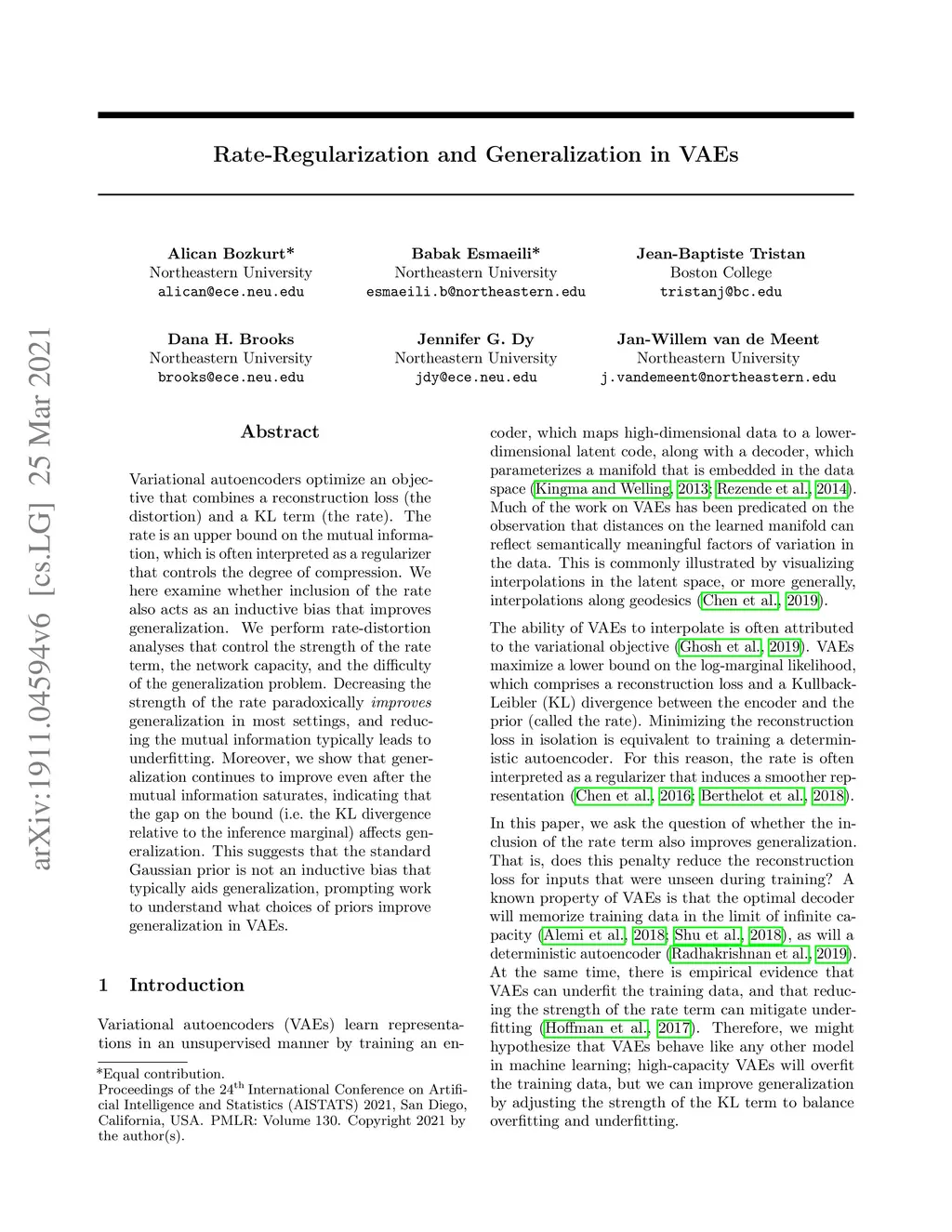 Variational autoencoders optimize an objective that combines a reconstruction loss (the distortion) and a KL term (the rate). The rate is an upper bound on the mutual information, which is often interpreted as a regularizer that controls the degree of compression. We here examine whether inclusion of the rate also acts as an inductive bias that improves generalization. We perform rate-distortion analyses that control the strength of the rate term, the network capacity, and the difficulty of the generalization problem. Decreasing the strength of the rate paradoxically improves generalization in most settings, and reducing the mutual information typically leads to underfitting. Moreover, we show that generalization continues to improve even after the mutual information saturates, indicating that the gap on the bound (i.e. the KL divergence relative to the inference marginal) affects generalization. This suggests that the standard Gaussian prior is not an inductive bias that typically aids generalization, prompting work to understand what choices of priors improve generalization in VAEs.