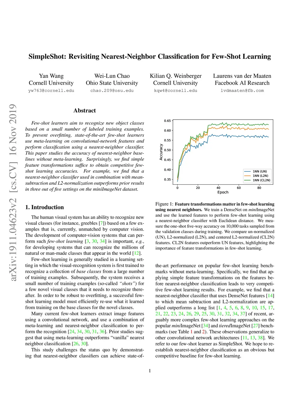 SimpleShot: Revisiting Nearest-Neighbor Classification for Few-Shot