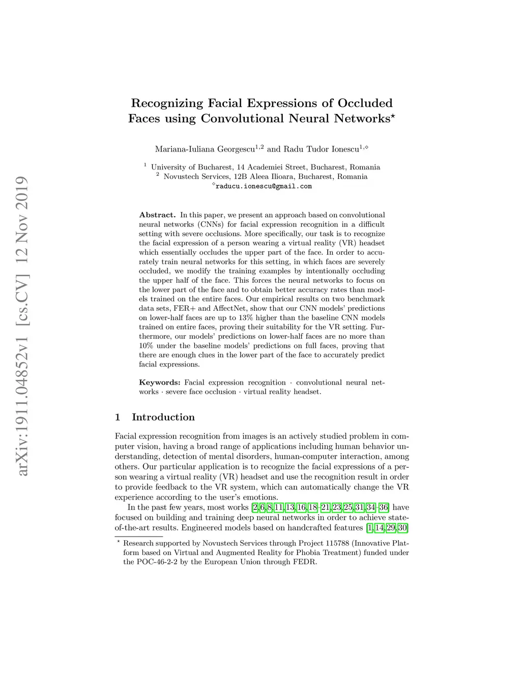 Recognizing Facial Expressions of Occluded Faces using Convolutional