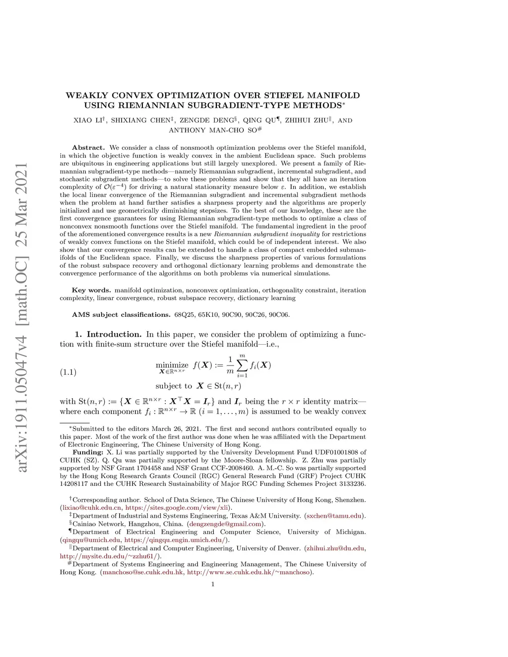 Weakly Convex Optimization over Stiefel Manifold Using Riemannian