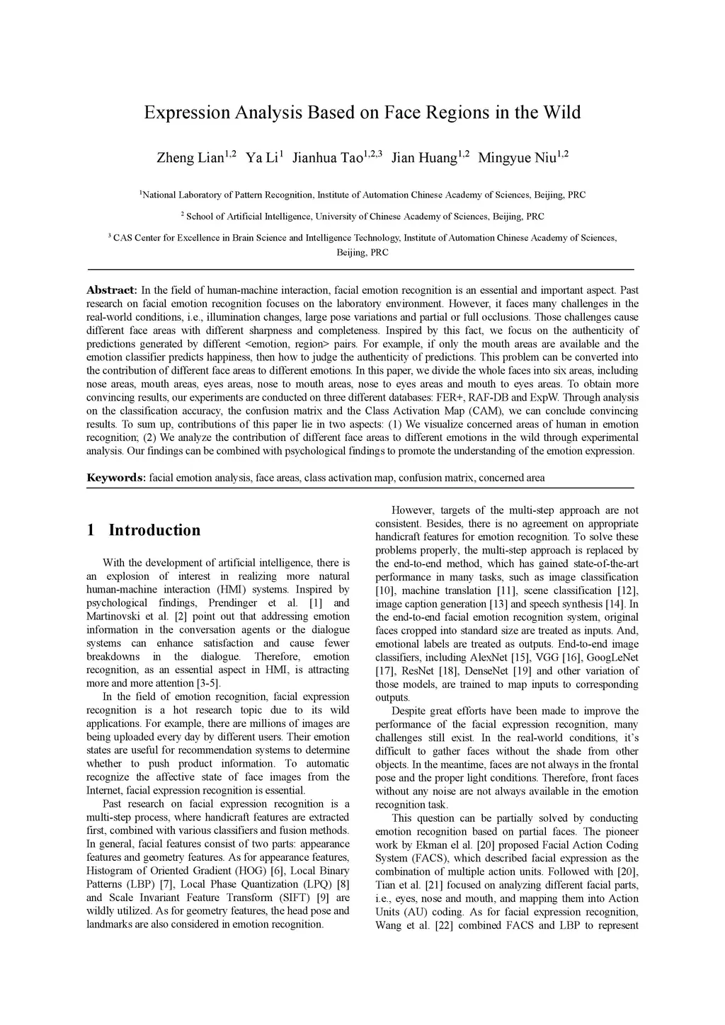 Expression Analysis Based on Face Regions in Read-world Conditions