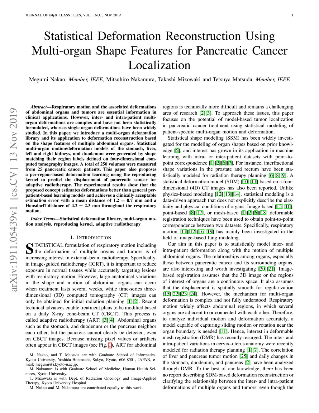 Statistical Deformation Reconstruction Using Multi-organ Shape Features