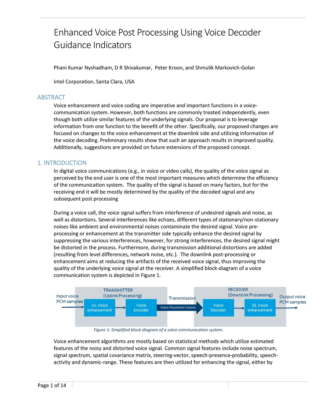 Voice enhancement and voice coding are imperative and important functions in a voice-communication system. However, both functions are commonly treated independently, even though both utilize similar features of the underlying signals. Our proposal is to leverage information from one function to the benefit of the other. Specifically, our proposed changes are focused on changes to the voice enhancement at the downlink side and utilizing information of the voice decoding. Preliminary results show that such an approach results in improved quality. Additionally, suggestions are provided on future extensions of the proposed concept.
