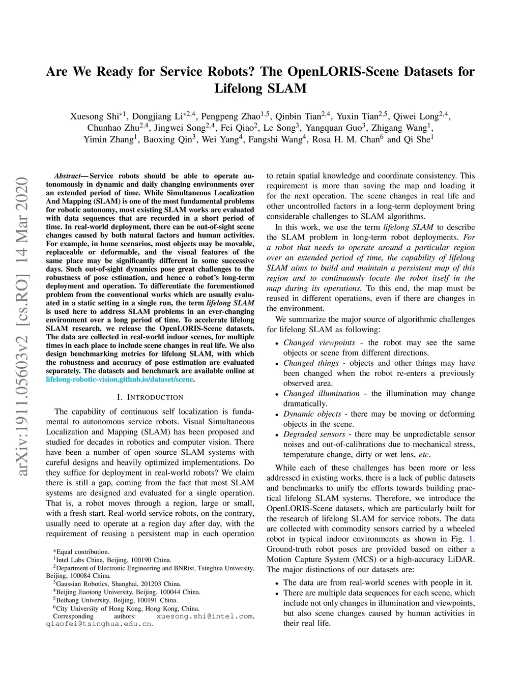 Are We Ready for Service Robots? The OpenLORIS-Scene Datasets for