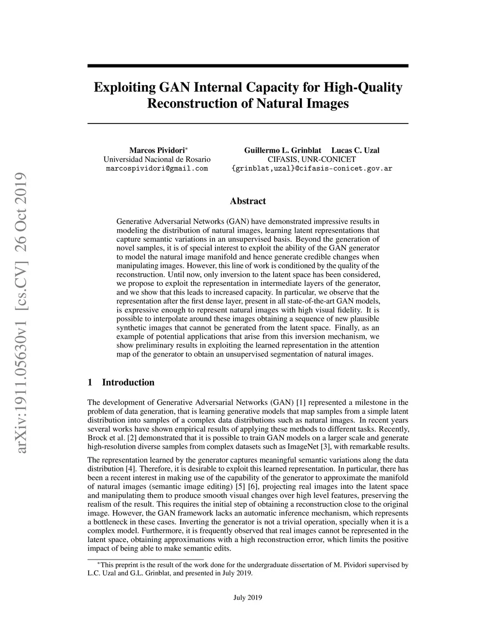 Generative Adversarial Networks (GAN) have demonstrated impressive results in modeling the distribution of natural images, learning latent representations that capture semantic variations in an unsupervised basis. Beyond the generation of novel samples, it is of special interest to exploit the ability of the GAN generator to model the natural image manifold and hence generate credible changes when manipulating images. However, this line of work is conditioned by the quality of the reconstruction. Until now, only inversion to the latent space has been considered, we propose to exploit the representation in intermediate layers of the generator, and we show that this leads to increased capacity. In particular, we observe that the representation after the first dense layer, present in all state-of-the-art GAN models, is expressive enough to represent natural images with high visual fidelity. It is possible to interpolate around these images obtaining a sequence of new plausible synthetic images that cannot be generated from the latent space. Finally, as an example of potential applications that arise from this inversion mechanism, we show preliminary results in exploiting the learned representation in the attention map of the generator to obtain an unsupervised segmentation of natural images.