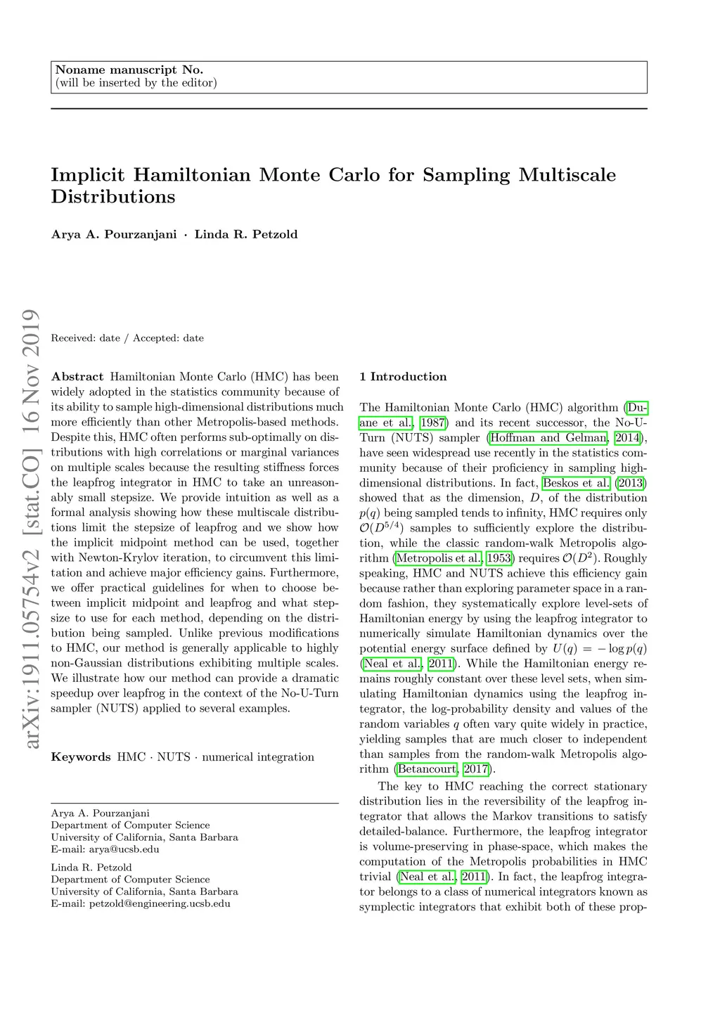 Hamiltonian Monte Carlo (HMC) has been widely adopted in the statistics community because of its ability to sample high-dimensional distributions much more efficiently than other Metropolis-based methods. Despite this, HMC often performs sub-optimally on distributions with high correlations or marginal variances on multiple scales because the resulting stiffness forces the leapfrog integrator in HMC to take an unreasonably small stepsize. We provide intuition as well as a formal analysis showing how these multiscale distributions limit the stepsize of leapfrog and we show how the implicit midpoint method can be used, together with Newton-Krylov iteration, to circumvent this limitation and achieve major efficiency gains. Furthermore, we offer practical guidelines for when to choose between implicit midpoint and leapfrog and what stepsize to use for each method, depending on the distribution being sampled. Unlike previous modifications to HMC, our method is generally applicable to highly non-Gaussian distributions exhibiting multiple scales. We illustrate how our method can provide a dramatic speedup over leapfrog in the context of the No-U-Turn sampler (NUTS) applied to several examples.
