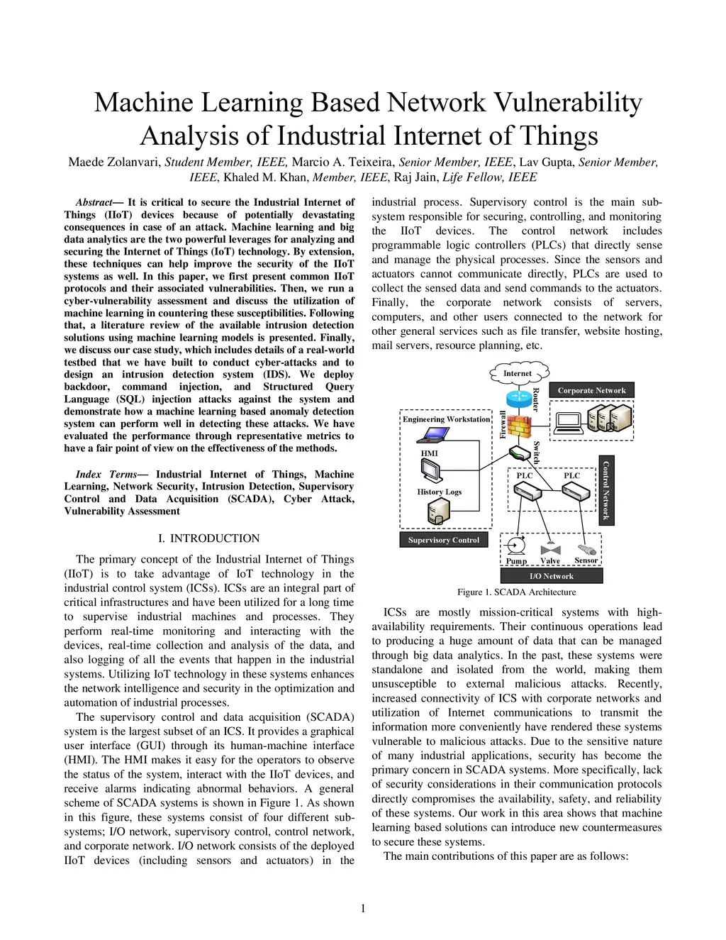 Machine Learning Based Network Vulnerability Analysis of Industrial