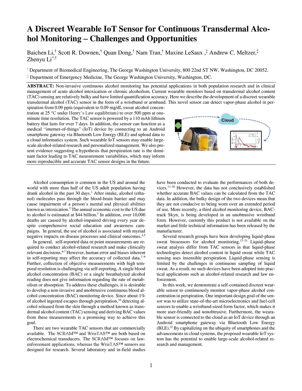 A Discreet Wearable IoT Sensor for Continuous Transdermal Alcohol
