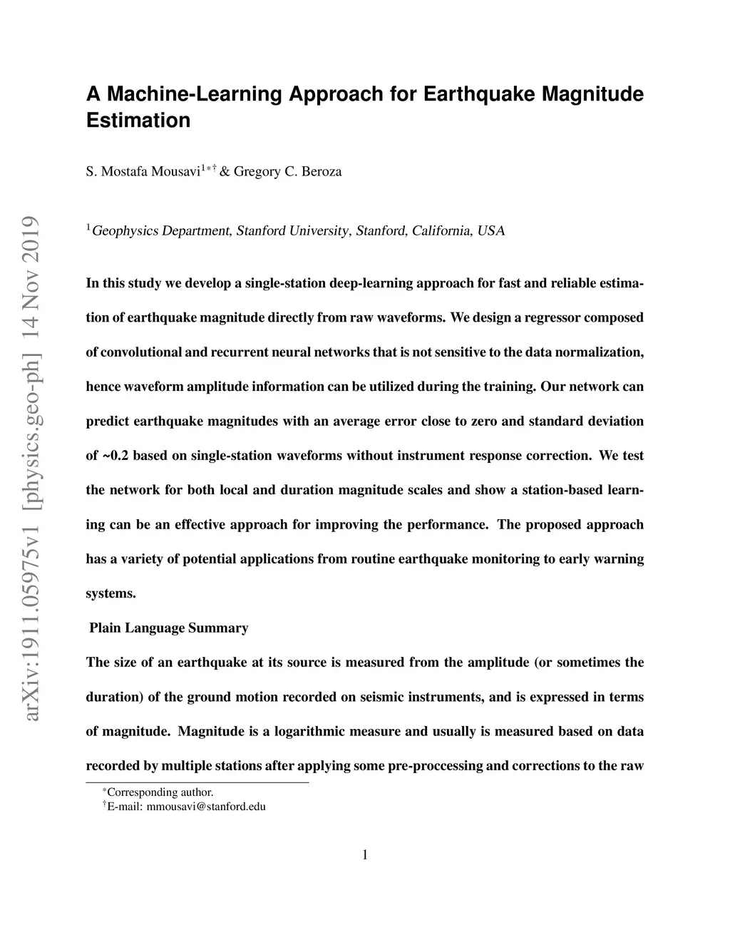 A Machine-Learning Approach for Earthquake Magnitude Estimation