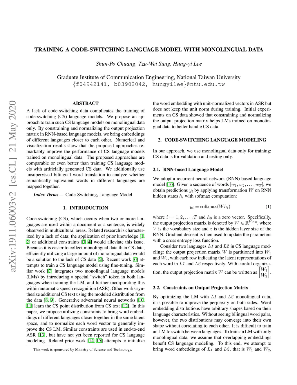 Training a code-switching language model with monolingual data