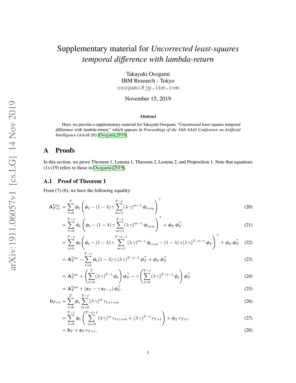 Here, we provide a supplementary material for Takayuki Osogami, "Uncorrected least-squares temporal difference with lambda-return," which appears in {\it Proceedings of the 34th AAAI Conference on Artificial Intelligence} (AAAI-20).