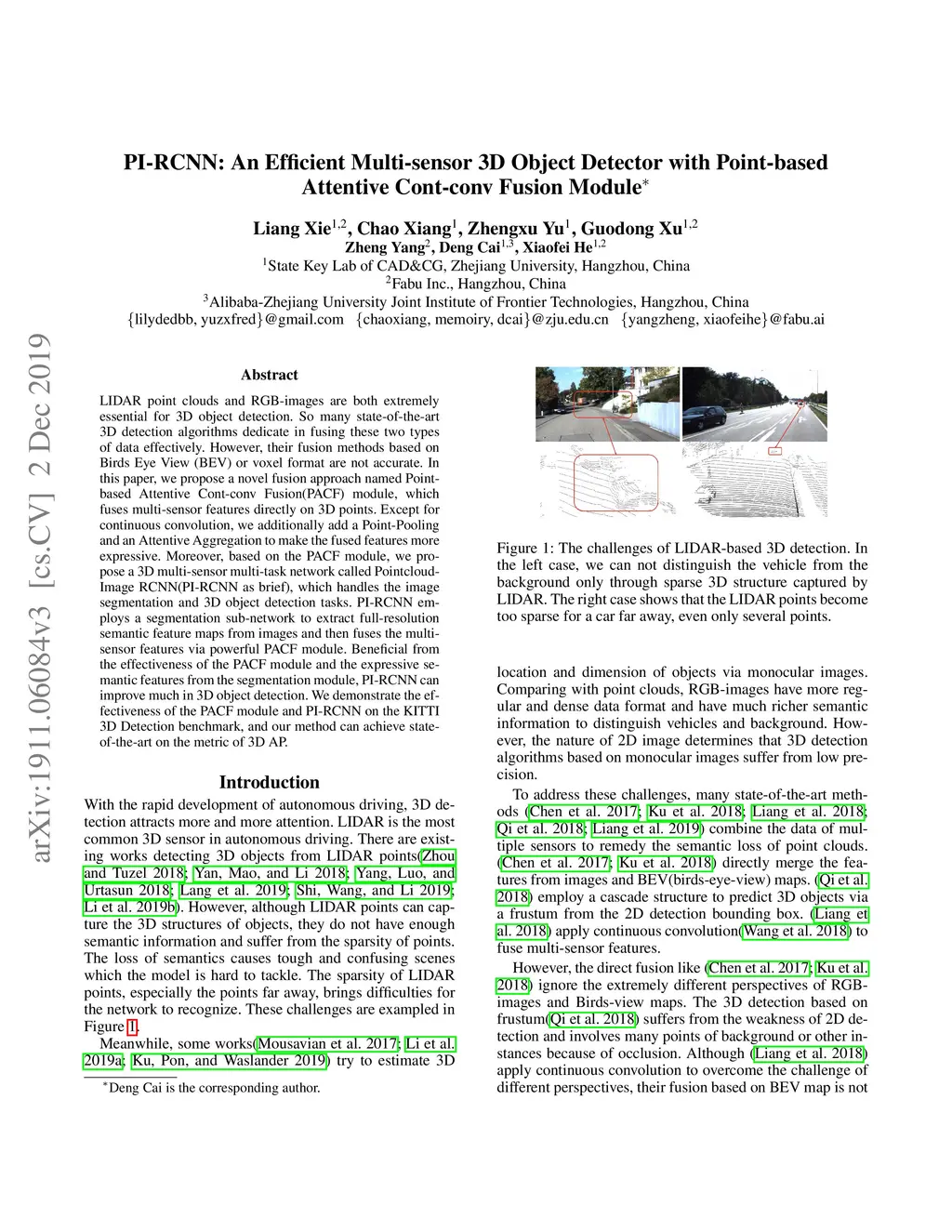 PI-RCNN: An Efficient Multi-sensor 3D Object Detector with Point-based Attentive Cont-conv Fusion Module