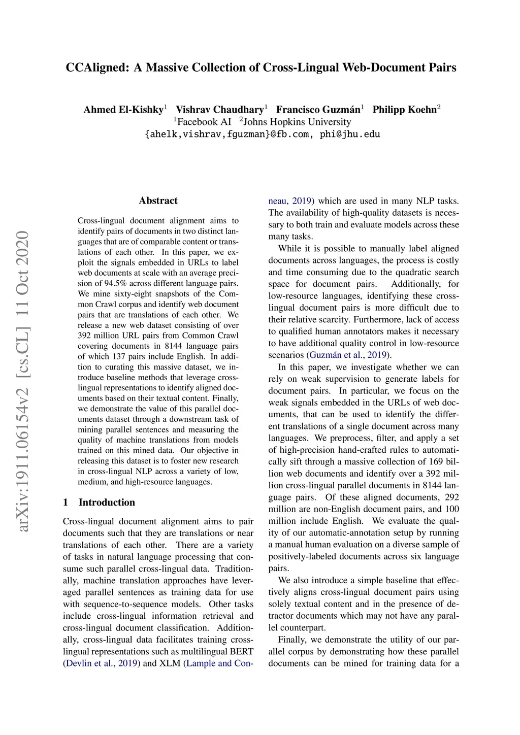 CCAligned: A Massive Collection of Cross-Lingual Web-Document Pairs