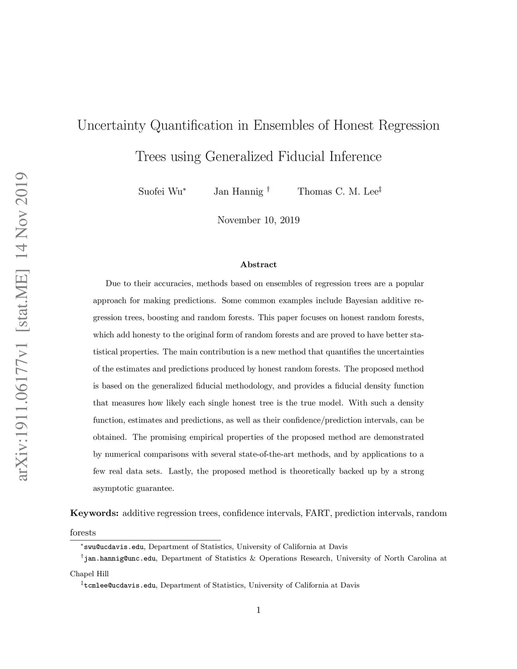Uncertainty Quantification in Ensembles of Honest Regression Trees using