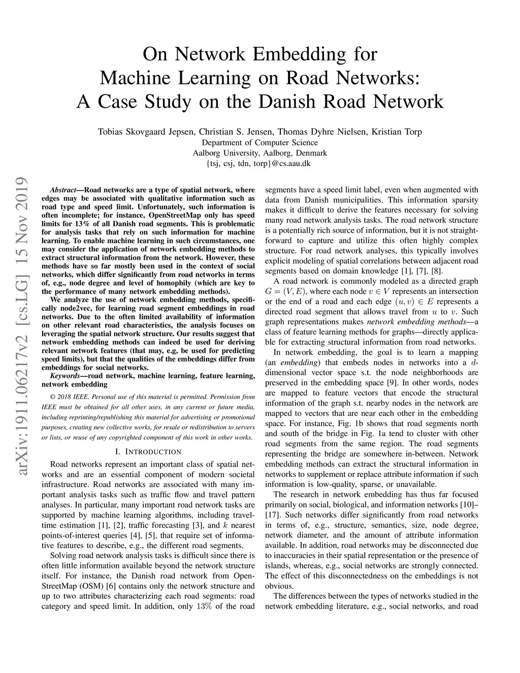 On Network Embedding for Machine Learning on Road Networks: A Case Study
