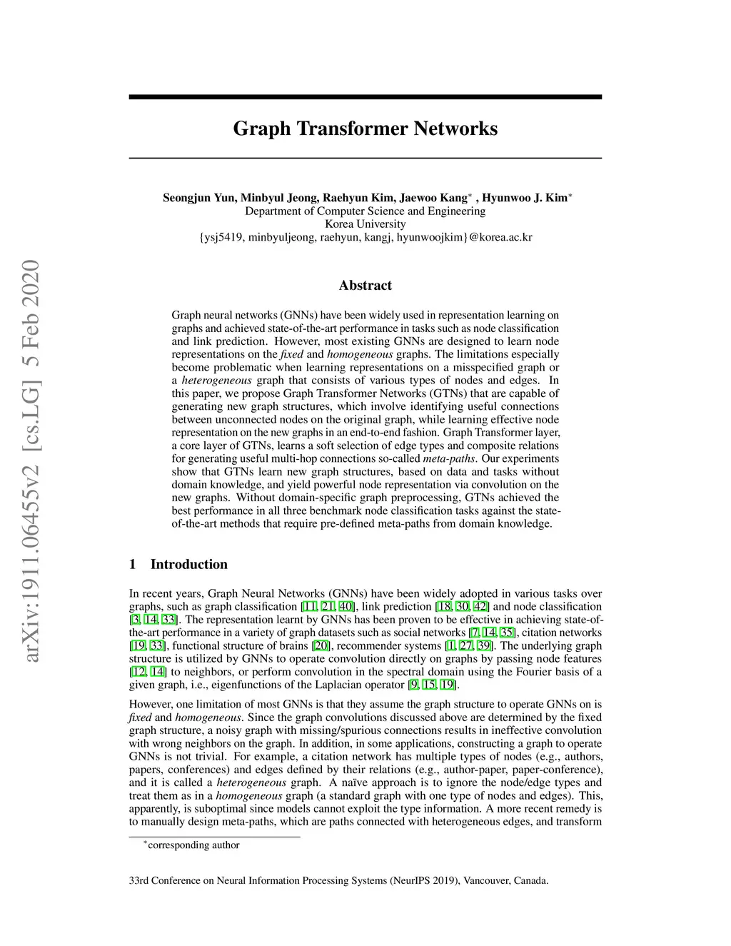 Graph Transformer Networks
