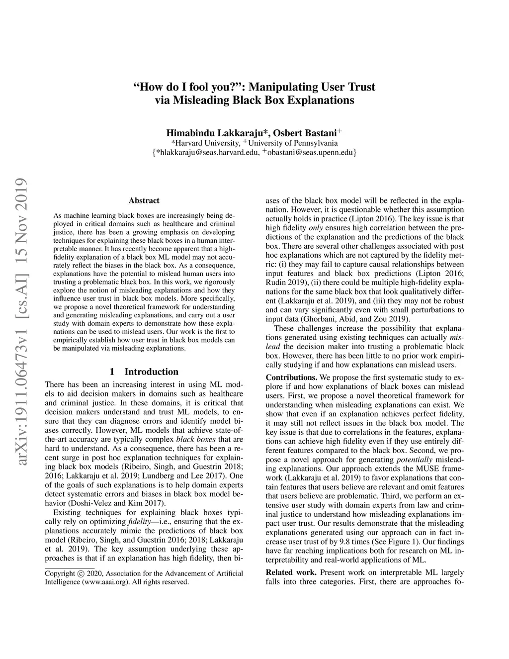 "How do I fool you?": Manipulating User Trust via Misleading Black Box