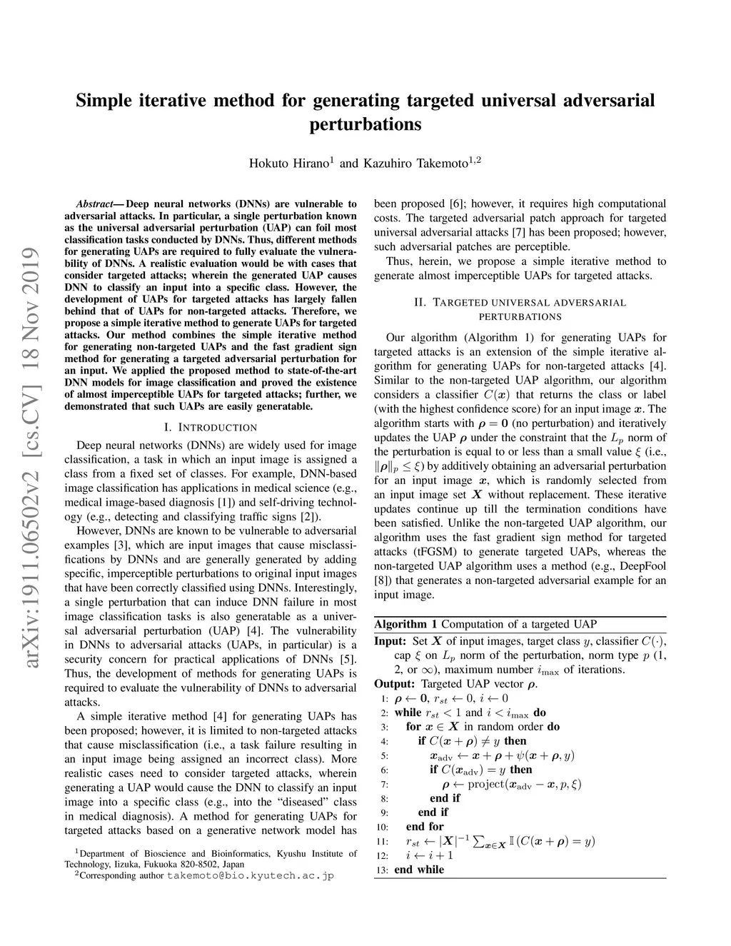 Simple iterative method for generating targeted universal adversarial