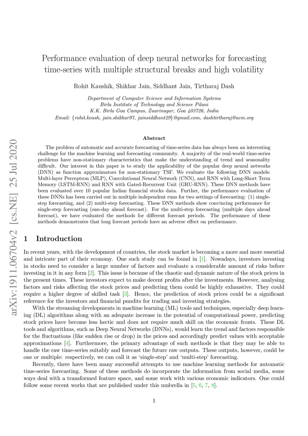 The problem of automatic forecasting of time-series data has been a long-standing challenge for the machine learning and forecasting community. The problem is relatively simple when the series is stationary. However, the majority of the real-world time-series problems have non-stationary characteristics making the understanding of the trend and seasonality very complex. Further, it is assumed that the future response is dependent on the past data and, therefore, can be modeled using a function approximator. Our interest in this paper is to study the applicability of the popular deep neural networks (DNN) comprehensively as function approximators for non-stationary time-series forecasting. We employ the following DNN models: Multi-layer Perceptron (MLP), Convolutional Neural Network (CNN), and RNN with Long-Short Term Memory (LSTM-RNN) and RNN with Gated-Recurrent Unit (GRU-RNN). These powerful DNN methods have been evaluated over popular Indian financial stocks data comprising of five stocks from National Stock Exchange Nifty-50 (NSE-Nifty50), and five stocks from Bombay Stock Exchange 30 (BSE-30). Further, the performance evaluation of these DNNs in terms of their predictive power has been done using two fashions: (1) single-step forecasting, (2) multi-step forecasting. Our extensive simulation experiments on these ten datasets report that the performance of these DNNs for single-step forecasting is pretty convincing as the predictions are found to follow the truely observed values closely. However, we also find that all these DNN models perform miserably in the case of multi-step time-series forecasting, based on the datasets used by us. Consequently, we observe that none of these DNN models are reliable for multi-step time-series forecasting.