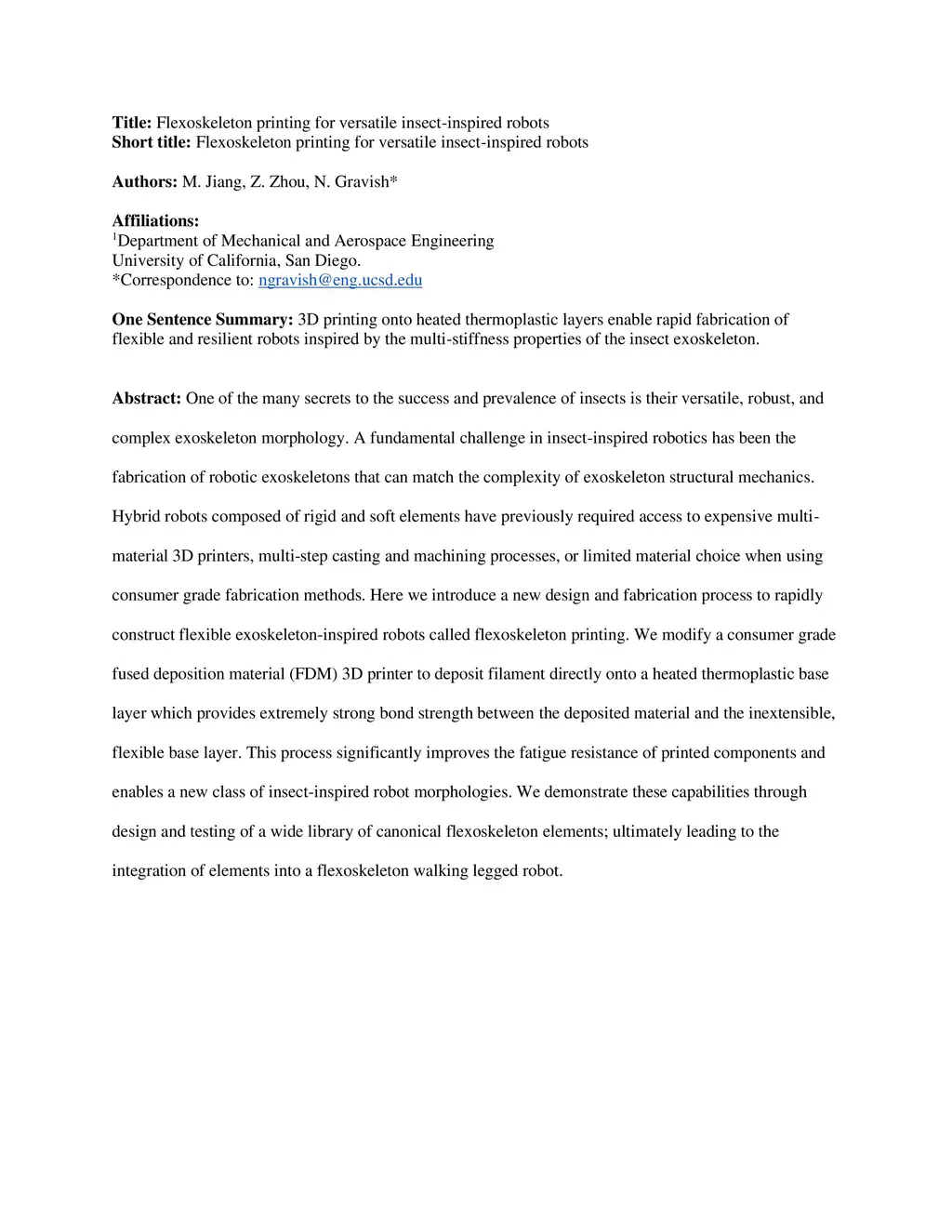 Flexoskeleton printing for versatile insect-inspired robots