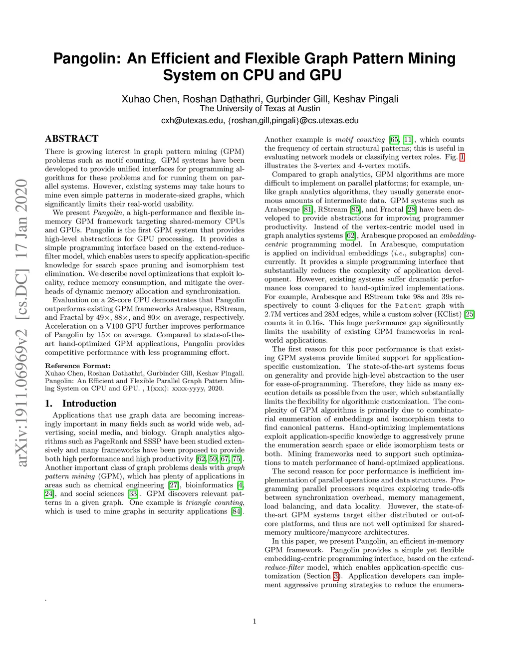 Pangolin: An Efficient and Flexible Graph Pattern Mining System on CPU