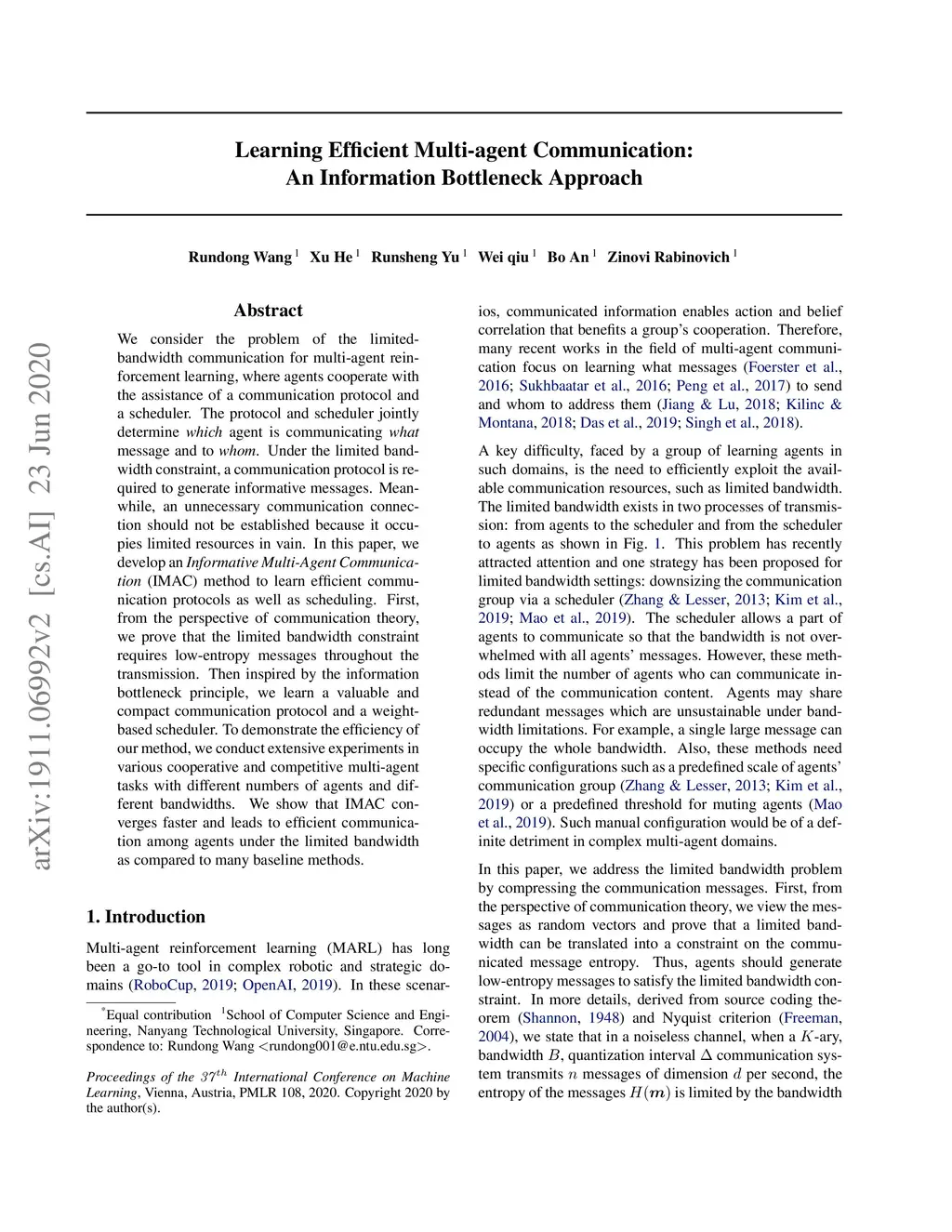 Learning Efficient Multi-agent Communication: An Information Bottleneck