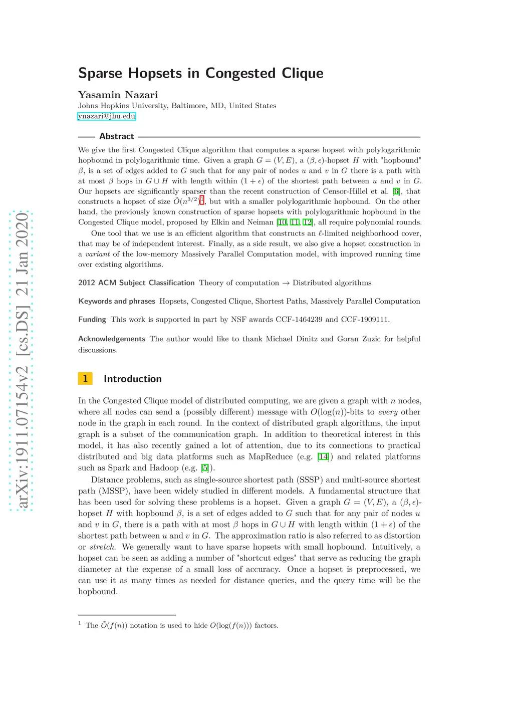 We give the first Congested Clique algorithm that computes a sparse hopset with polylogarithmic hopbound in polylogarithmic time. Given a graph , a -hopset with "hopbound" , is a set of edges added to such that for any pair of nodes and in there is a path with at most hops in with length within of the shortest path between and in . Our hopsets are significantly sparser than the recent construction of Censor-Hillel et al. [6], that constructs a hopset of size , but with a smaller polylogarithmic hopbound. On the other hand, the previously known constructions of sparse hopsets with polylogarithmic hopbound in the Congested Clique model, proposed by Elkin and Neiman [10],[11],[12], all require polynomial rounds. One tool that we use is an efficient algorithm that constructs an -limited neighborhood cover, that may be of independent interest. Finally, as a side result, we also give a hopset construction in a variant of the low-memory Massively Parallel Computation model, with improved running time over existing algorithms.